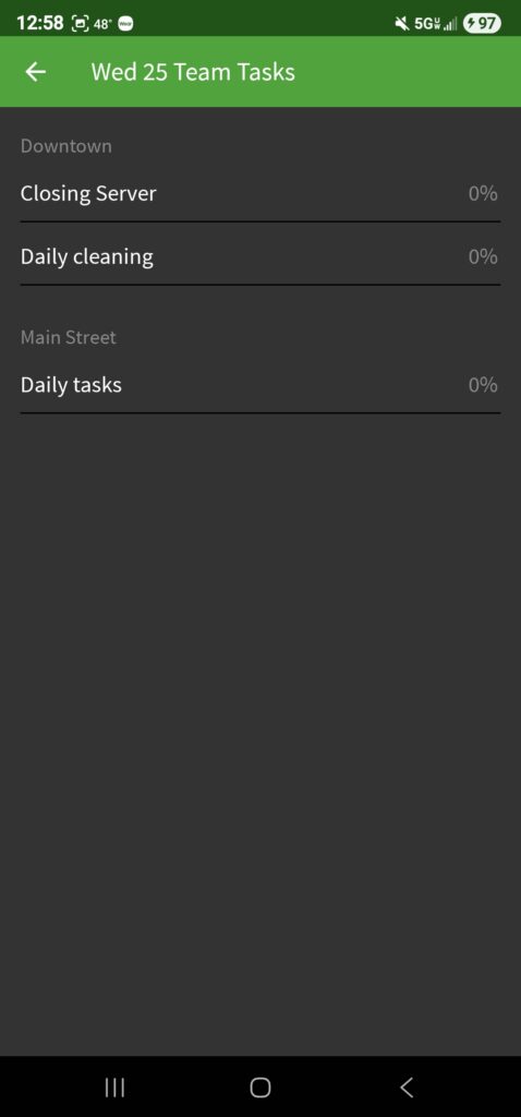 - The Team Tasks tab display tasks that anyone working that day can complete