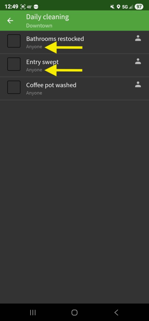 - You will see a list of all tasks separated by the Schedule they are assigned on. Tap the list you want to check.