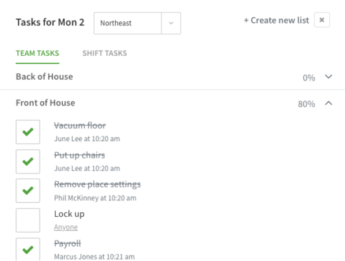Add shift task lists when creating shifts in the Scheduler for the assigned user to complete.