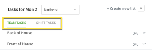 When I Work offers two types of task lists: Team Tasks and Shift Tasks.