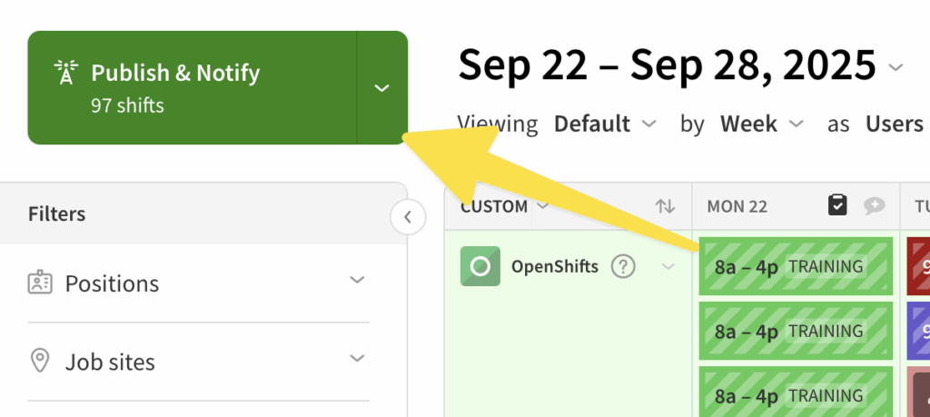 After you add OpenShifts to the schedule, publish them to let your staff know they can pick up more shifts.