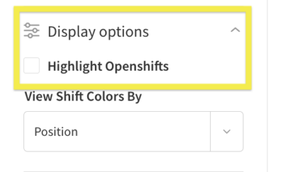 | Checking this box will highlight any available OpenShifts within each position on the schedule. All other shifts will show faded. |