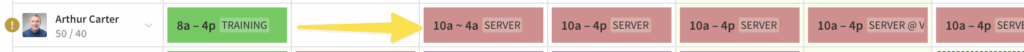 NOTE: If a user is assigned to an overnight shift, ~ will appear instead of – in the shift’s time frame. For example, 10:00AM ~ 4:00AM.