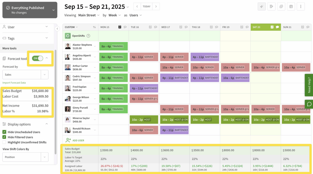 Forecast Tools help you view estimated labor costs for scheduled hours.
