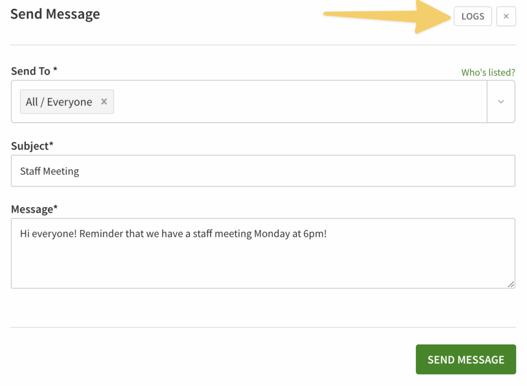 - You must have manager or admin access privileges to view the log for all users. If you have supervisor privileges, you can view the log for messages sent to you but not other users.