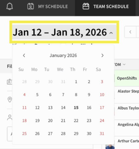NOTE: If Team Schedule is missing your employer doesn’t allow you and your coworkers to view the full team schedule.