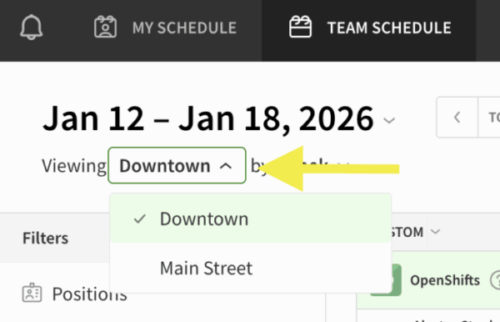 If you work at multiple schedules, you can use the Viewing section under the date(s) of the schedule to switch between them.