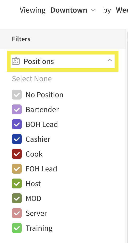 If you only want to see shifts for specific positions, use the Positions selector on the left side of the page to uncheck the positions you want to hide: